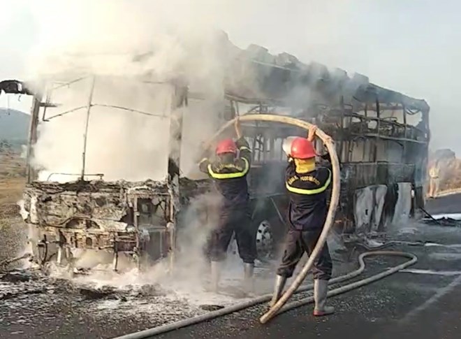 At about 8:45 p.m. on September 19, a truck with license plate 51C-210.50 traveling from South to North caught fire when it reached km171+350 of Vinh Hao - Phan Thiet highway.