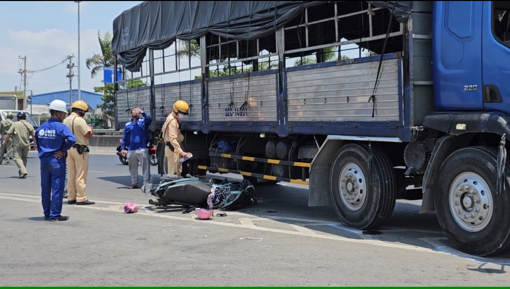 At the scene, truck 89H - 018.52 was lying under the bridge of the highway, fire was coming from the cabin of the truck. At this time, the driver had escaped, injured.