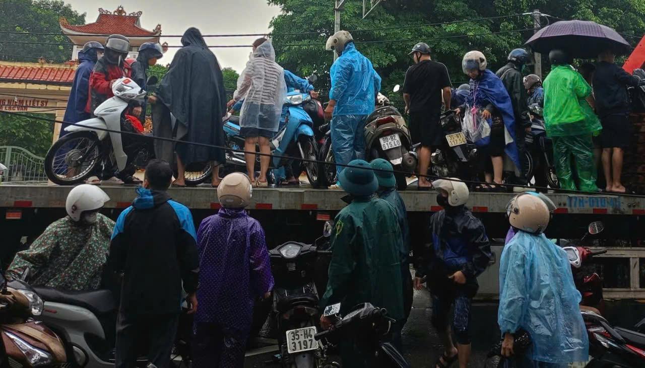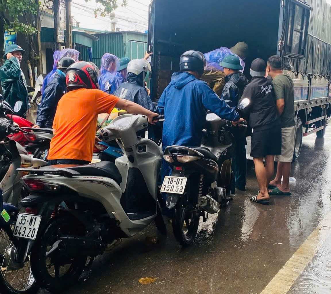Many motorbikes and low-chassis cars could not move. To promptly support, the authorities and local people mobilized large trucks and rescue vehicles to take people and vehicles through flooded areas, ensuring the safety of people's lives and property.