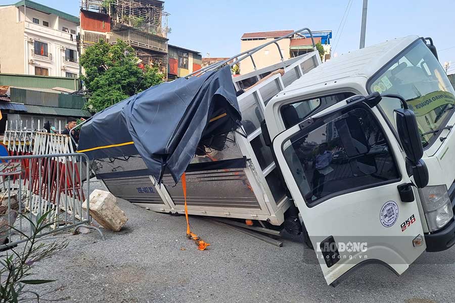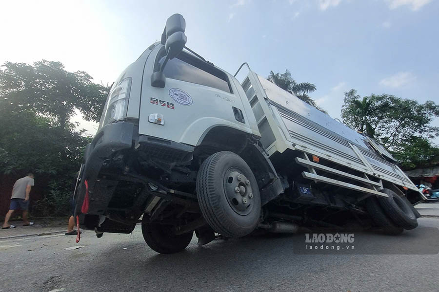 At about 12:30 on October 9, driver Nguyen Tien Dung was driving a truck with license plate 29E-407.XX in Nam Cuong Urban Area (Nghia Do Ward, Hanoi). When the car reached the headquarters of Nghia Do Ward Police, it suddenly dropped into a deep hole.