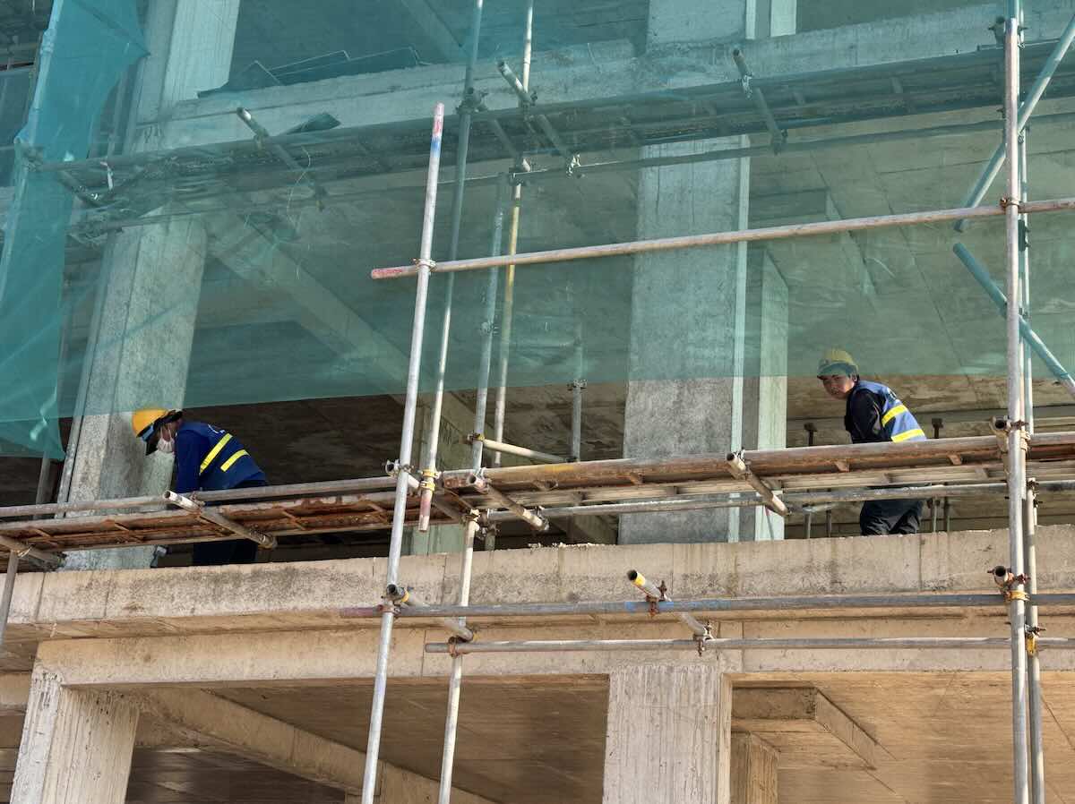 Workers stick to the construction site