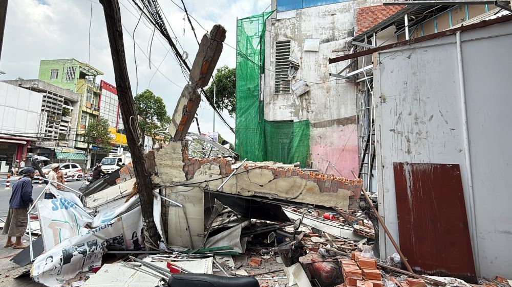 Can Tho - On the afternoon of March 15, a house wall collapsed near the Mau Than - 3 Thang 2 - Tran Hung Dao intersection (Ninh Kieu district), causing a worker to suffer minor injuries.