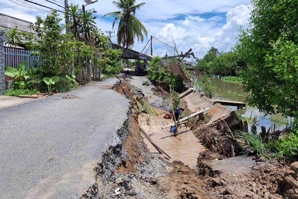Can Tho - At the time of the landslide, the corrugated iron roof in front of the house showed signs of shaking, creating a large wall noise. The land gradually subsided almost the entire road surface.