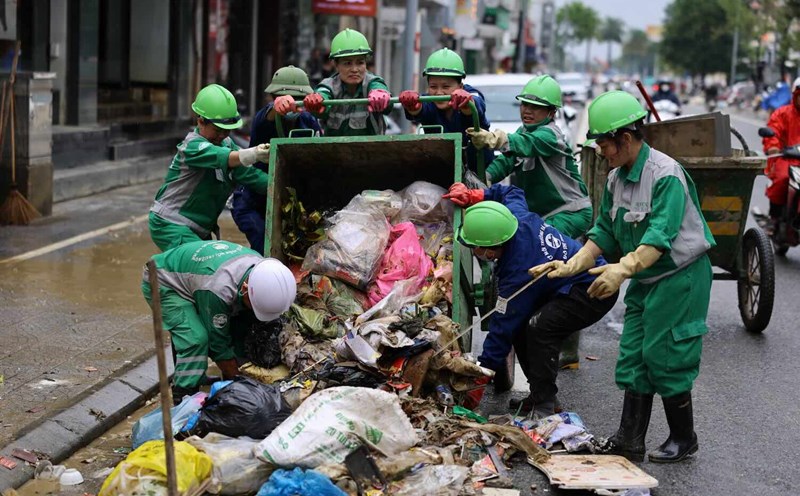 HUE - Environmental workers urgently collect garbage and treat mud, helping to quickly restore the environment and stabilize life after floods.