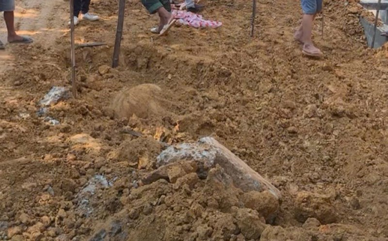 Thanh Hoa - While constructing a road, workers discovered a bomb more than 1 meter long lying under the road.