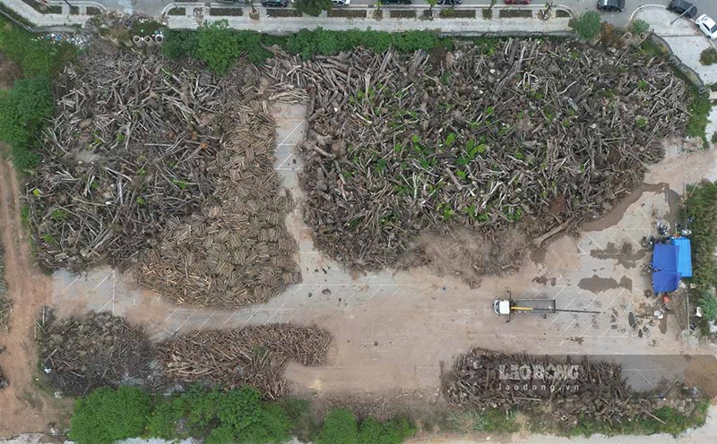 Hundreds of cubic meters of wood from fallen trees after storm No. 3 are being gathered at Chu Van An Park (Thanh Tri district) for auction.