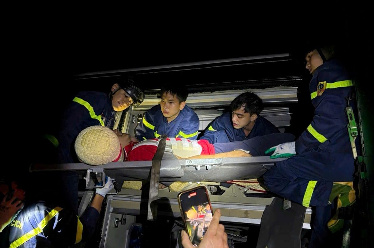 Thanh Hoa Fire Prevention and Rescue Police in coordination with Ninh Binh have just rescued 2 victims trapped in a traffic accident.