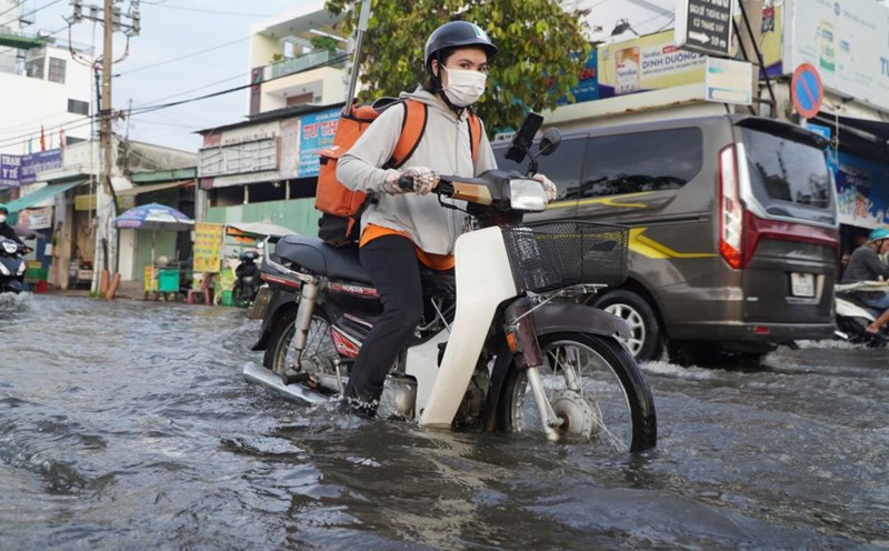 Ho Chi Minh City - High tides, exceeding alarm level III, have caused many roads to be deeply flooded, making travel difficult for people.