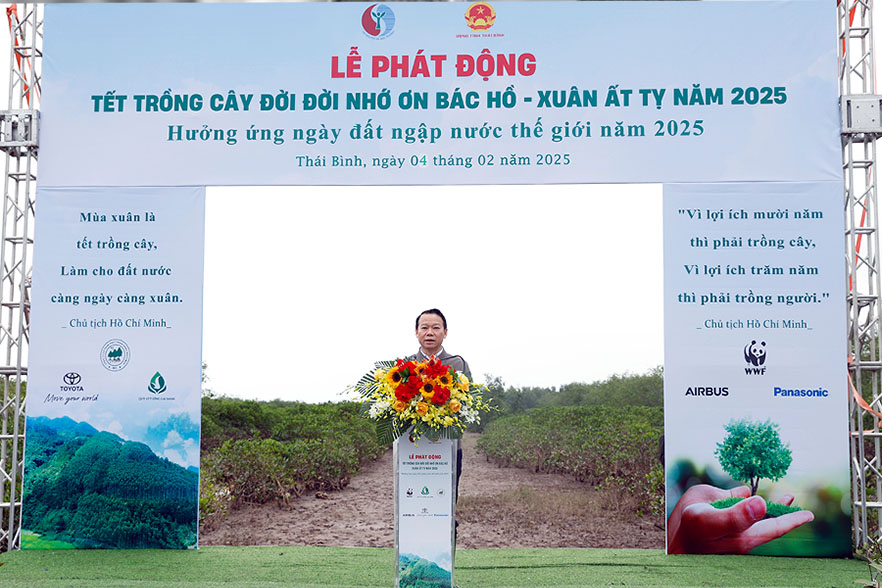 The Ministry of Natural Resources and Environment coordinated with the People's Committee of Thai Binh province to launch the "Tree Planting Festival to forever remember Uncle Ho" and respond to World Wetlands Day 2025.