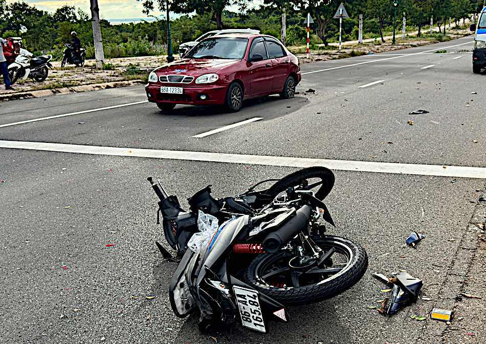 Binh Thuan - A man was driving a newly purchased motorbike on his way to get the license plate when he collided with a car displaying a "practice driving" sticker and died.