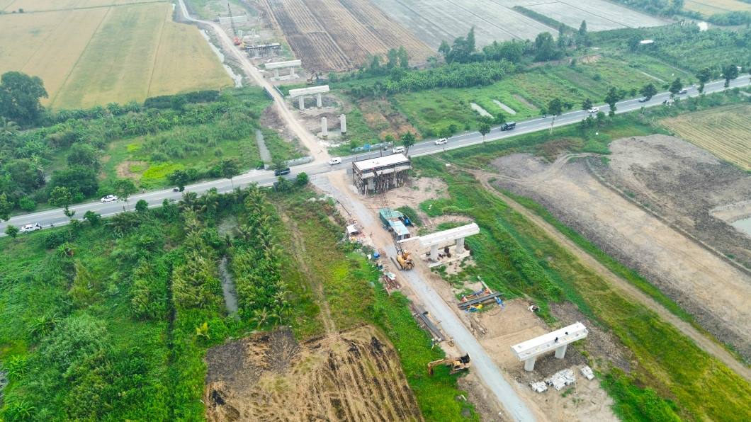 Hau Giang - National Highway 61C (Chau Thanh A district) will restrict traffic from October 29 to November 1 to carry out construction of the expressway overpass girder.