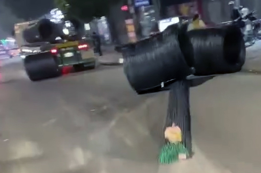 Hanoi - Many steel coils fell from a tractor trailer onto the road, fortunately causing no casualties.