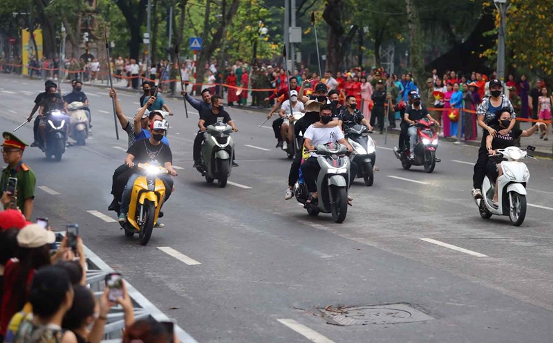This is the performance in the rehearsal to prepare for the launching ceremony to ensure security and order on the occasion of the 80th anniversary of National Day and the Festival for the Peaceful Capital of Hanoi Police.