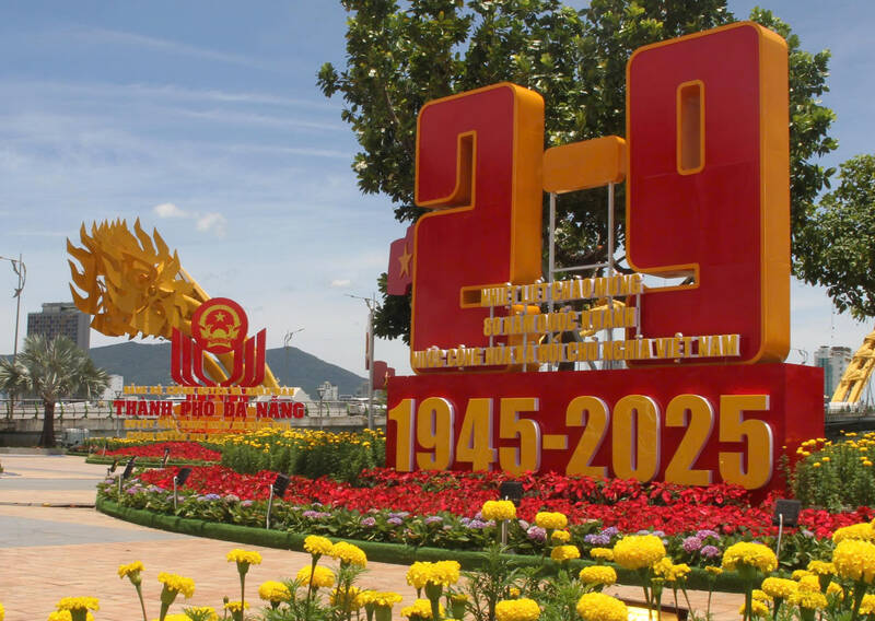 Da Nang - Many streets in the center of Da Nang are decorated with impressive flags and flowers to celebrate the 80th anniversary of the August Revolution and National Day on September 2 (1945-2025).