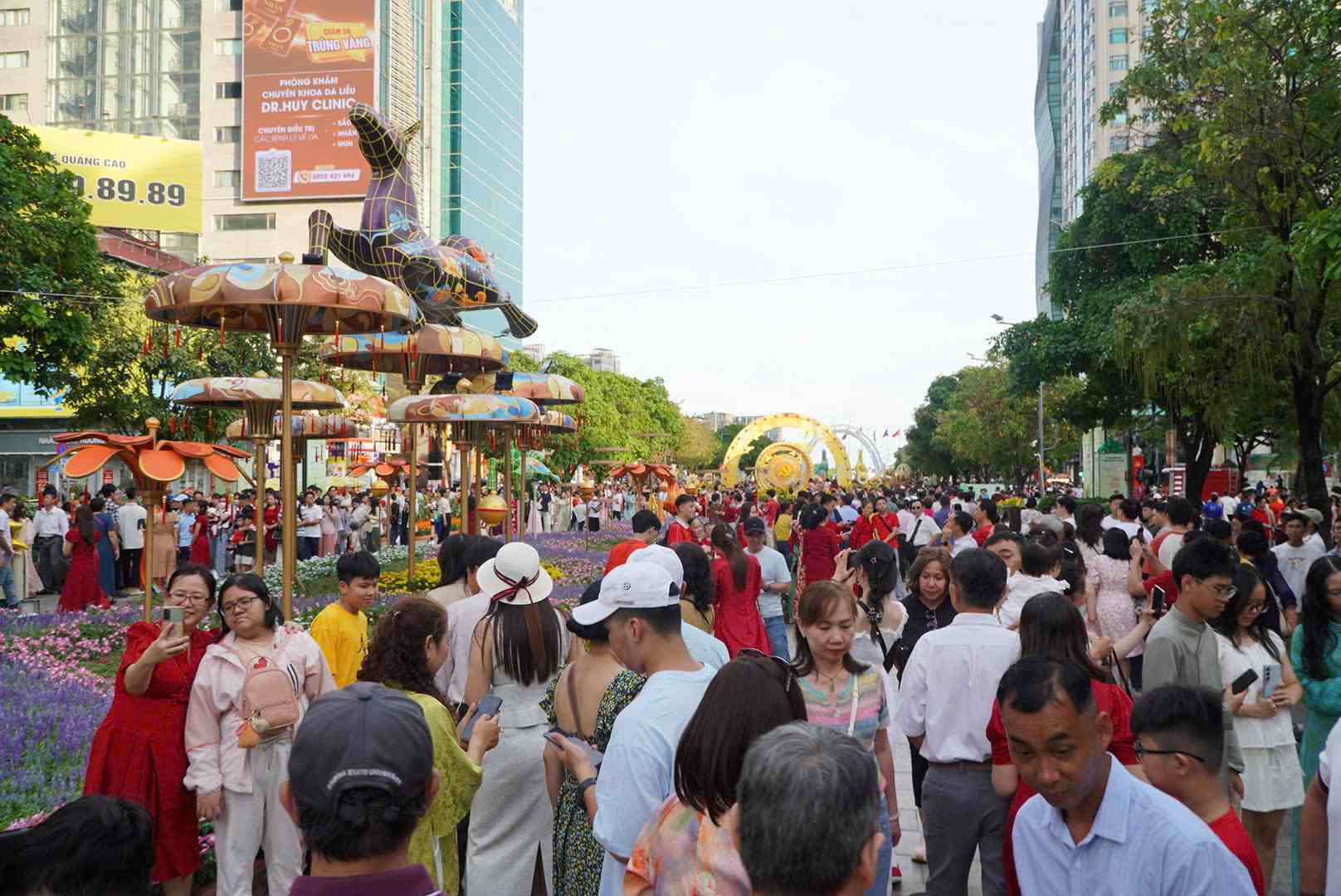 Nguyen Hue flower street is crowded with spring tourists on the 1st day of Binh Ngo Tet