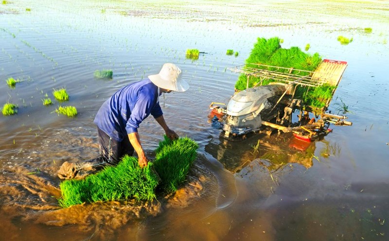 Soc Trang - From ceiling to planting machines, Soc Trang farmers apply advanced mechanization, improve quality, and produce ST25 rice sustainably.