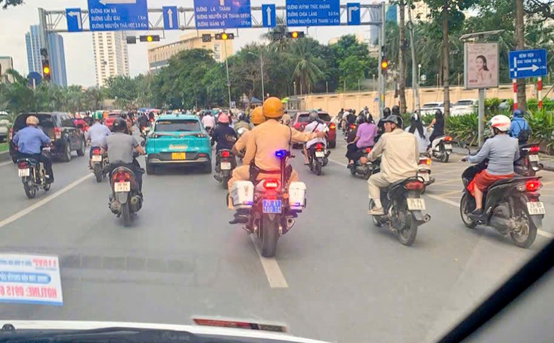 Hanoi - Receiving an emergency request for support from the family of a child with a high fever, the traffic police officers used a specialized motorbike to clear the way for the ambulance to the hospital.