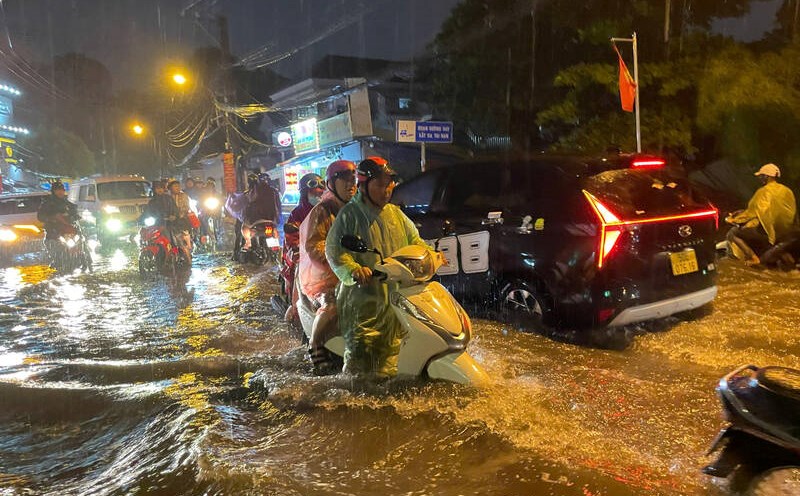Many streets in Ho Chi Minh City are flooded nearly 1m deep after heavy rain