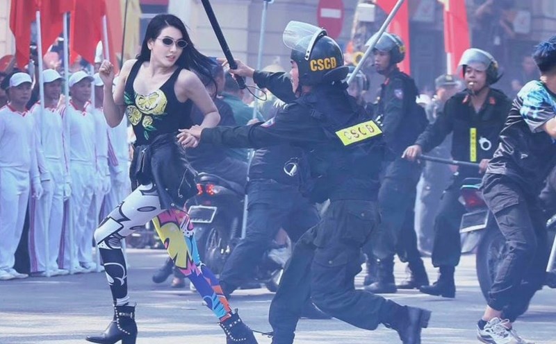 Hanoi - The image of a female police major transforming into the character of a " Street girls" in a crime-reducing martial arts performance is attracting attention.