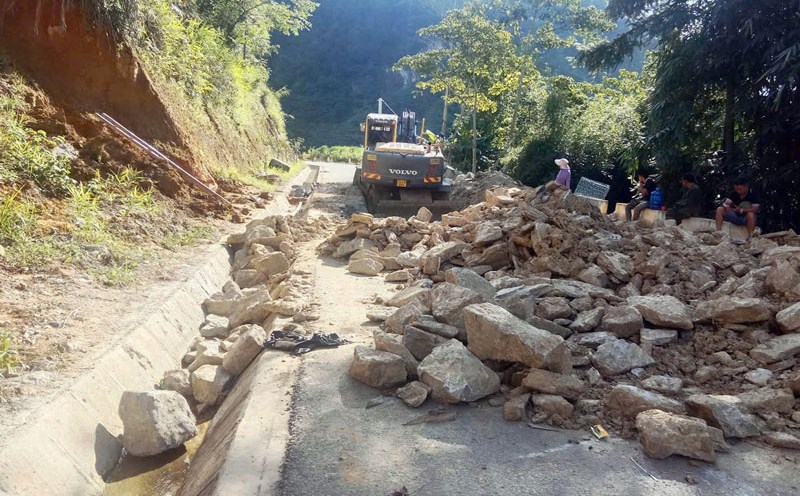 Lao Cai - After nearly 4 days of construction, by the afternoon of August 10, the subsidence point on the road from National Highway 4 to the center of Sin Che commune had been fixed.