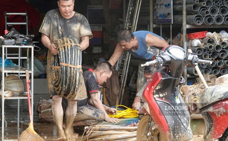 NGH' AN - As soon as the flood receded, on the afternoon of July 24, Con Cuong people were busy cleaning up after the flood, overcoming the severe consequences caused by the circulation of storm No. 3.