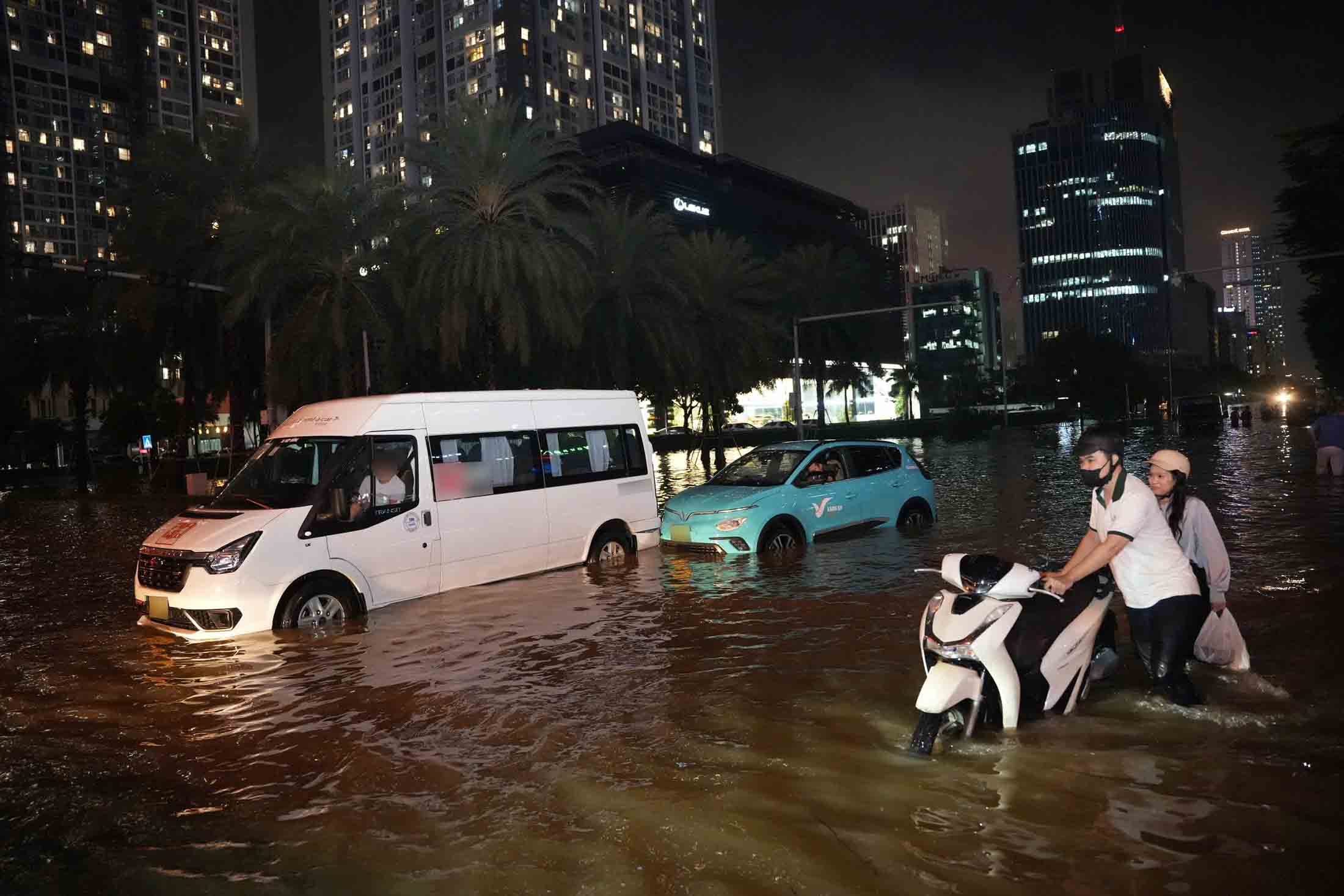 To be present at the workplace on the morning of October 1, many people had to wake up early, overcome deep flooded areas to try to be present on time.