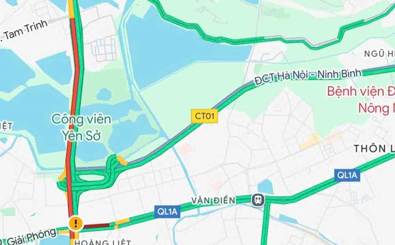 The Phap Van expressway traffic update feature towards the center of Hanoi has been disabled on Google map, affecting people's travel.