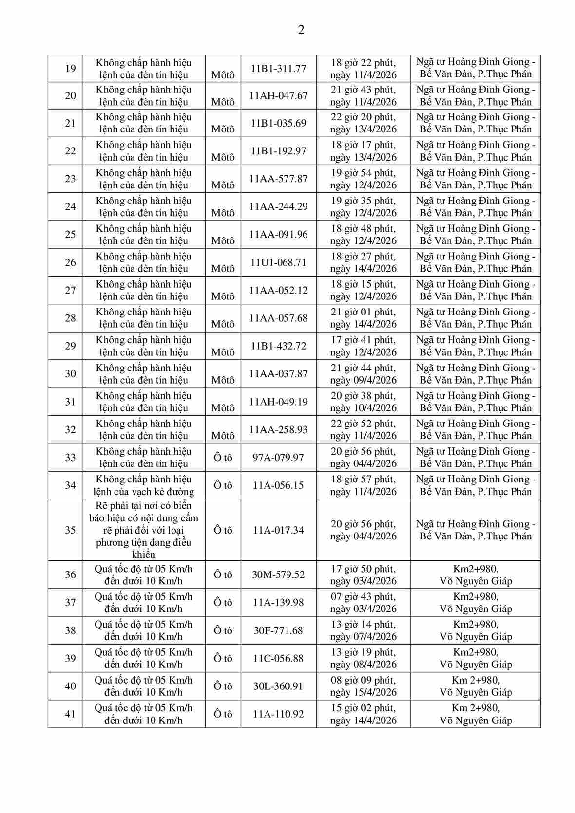 After the announcement, Cao Bang Provincial Police requested the violating individuals to come to the Traffic Police Department of the Provincial Police for settlement, at group 5, Thuc Phan ward (former Song Hien), Cao Bang province.