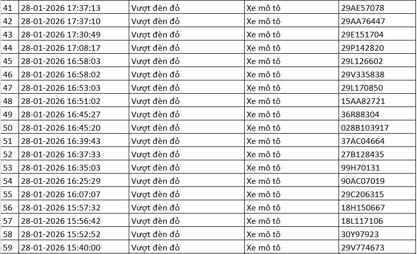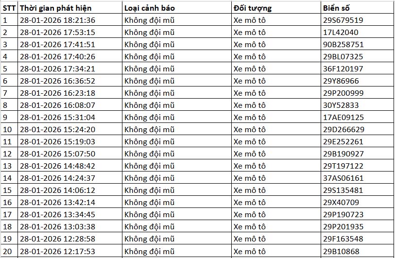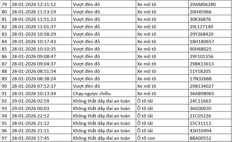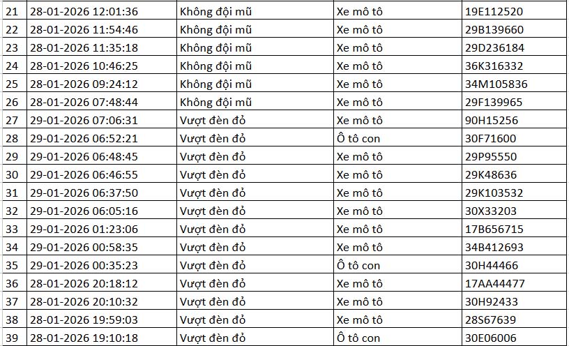 Information from the Traffic Police Department (CSGT) - Ministry of Public Security said that in the period from 12:00 on January 28 to 12:00 on January 29, the artificial intelligence (AI) application camera system operated by this unit recorded many cases of traffic order and safety violations in Hanoi and the Noi Bai - Lao Cai expressway.