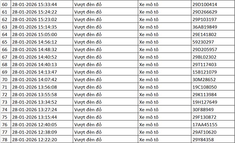 Below is a list of violating vehicles announced by the Traffic Police Department: