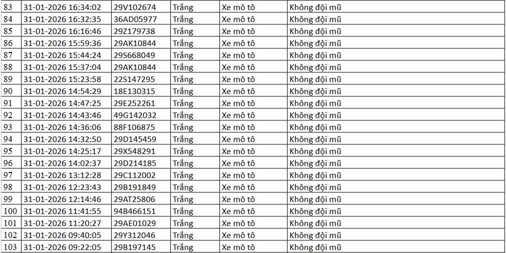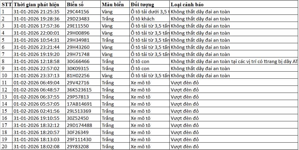 Information from the Traffic Police Department (CSGT) - Ministry of Public Security said that in the period from 12:00 on January 31st to 12:00 on February 1st, 2026, the artificial intelligence (AI) application camera system operated by this unit recorded many cases of traffic order and safety violations in Hanoi and the Noi Bai - Lao Cai expressway.