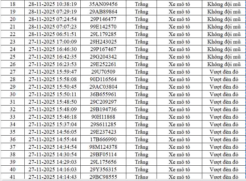 Below is a list of vehicles in violation publicly announced by the Traffic Police Department on the unit's official Fanpage. The Traffic Police Department hopes that everyone will comply with the law when participating in traffic.