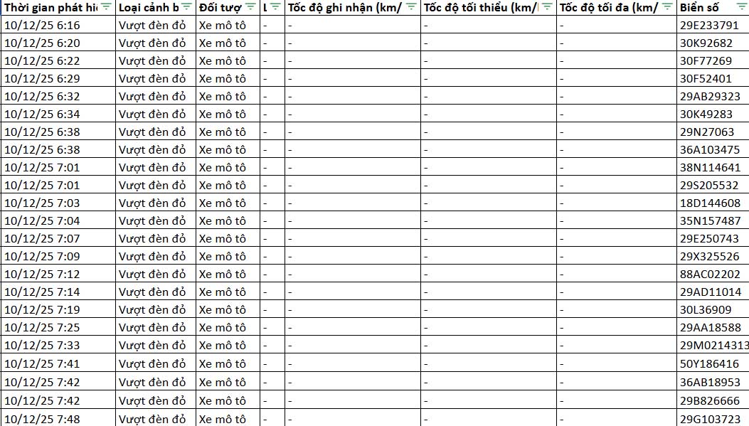 In the inner city of Hanoi, data extracted from the pilot AI camera installed at the Pham Van Bach - Hoang Quan Chi intersection (Cau Giay Ward) shows that many violations are automatically identified.