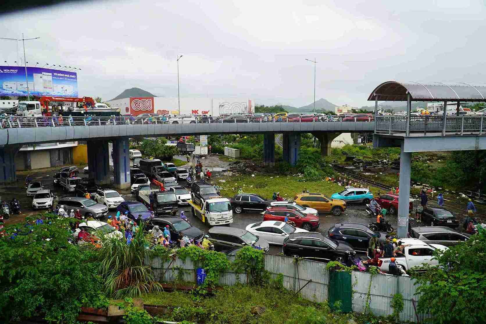 Along the routes of Vinh Diem Trung urban area and under Ngoc Hoi intersection, cars were flooded and parked on both sides of the road.