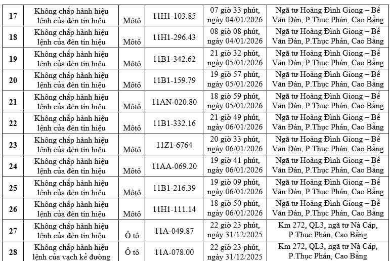 According to a notice from Cao Bang Provincial Police, cases of cars and motorbikes violating violations such as not complying with road markings were detected at Km272, National Highway 3 (Thuc Phan - Na Cap intersection) and running red lights at Hoang Dinh Giong - Be Van Dan intersection...