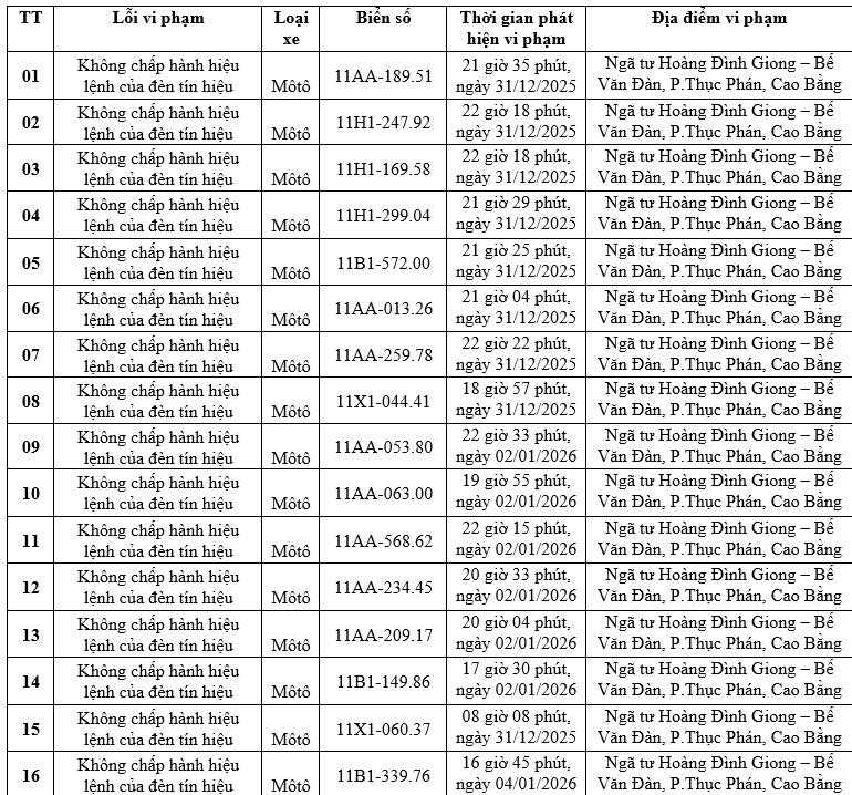 After the notice, Cao Bang Provincial Police requested the violating individuals to come to the headquarters for settlement at: Traffic Police Department of Cao Bang Provincial Police, address in group 5, Thuc Phan ward (old Song Hien), Cao Bang province.