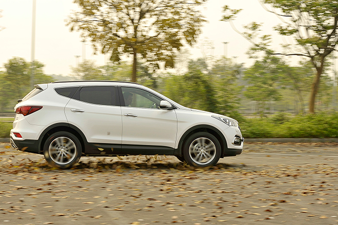 Chạy lên cao tốc Hà Nội – Hải Phòng, chuyển qua chế độ Sport, SantaFe như lột xác trở thành một mãnh thú. Tay lái nặng và chắc chắn hơn, chân ga nhạy và phản ứng tức thời với những cú đạp ga sát ván, đồng thời số được ngâm và được chuyển ở tua máy cao hơn, tạo được đà tăng tốc rất tốt cho chiếc xe lao đi trên đường. Lúc này, sức mạnh 202 mã lực của chiếc xe được phát huy tối đa, những pha vượt xe hết sức dễ dàng. Để so sánh, phiên bản 2015 chỉ được trang bị Steering Mode thay đổi nặng nhẹ đôi chút ở vô lăng không thể đem đến cho chúng tôi cảm giác phấn khích được như vậy.