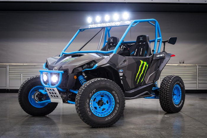 Chiếc SxS 131 mã lực Maverick X được trang bị lồng quây bảo vệ do HRT thiết kế và chế tạo, bộ quây bảo vệ cản trước từ thương hiệu Lonestar Racing, cùng cửa và vô-lăng từ thương hiệu Dragonfire. Trang bị còn bao gồm chắn bùn nới rộng từ Can-Am dành riêng cho mẫu xe này, yên xe độ thửa riêng của Ken Block từ thương hiệu Beard, đèn trợ sáng hàng hiệu của Rigid Industries và điểm nhấn cuối cùng ở bộ vành hàng hiệu Turbomac HD dành riêng cho off-road được chế tạo bằng phương pháp khuôn áp lực cùng lốp Toyo chuyên nghiệp.