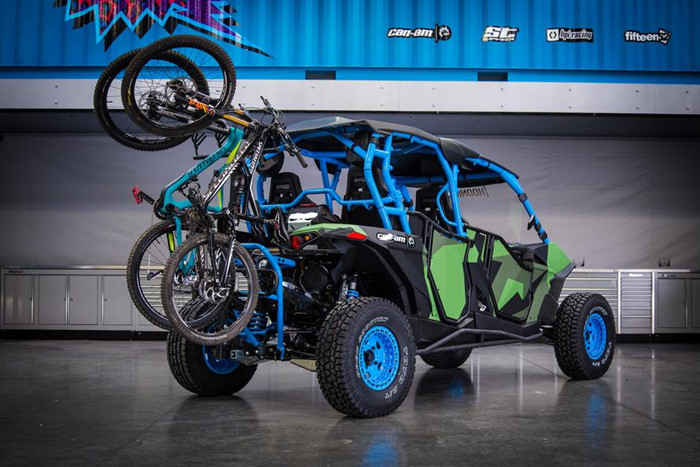 | Maverick SxS MAX có 4 chỗ ngồi, được Ken và nhóm HRT của mình độ lại với tiêu chí tích hợp nhiều công năng mà vẫn hợp pháp khi di chuyển trên đường tiêu chuẩn |