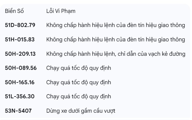 The Traffic Police Department, Hanoi City Police said that from October 1 to October 10, 2025, the police will fine many violations. Notably, among these, there are motorbikes with Ho Chi Minh City license plates that violate ( marked) as follows: