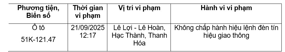 The Traffic Police Department, Thanh Hoa Provincial Police announced the list of fines from September 21, 2025 to September 25, 2025. Among these are HCMC-licensed vehicles as follows: