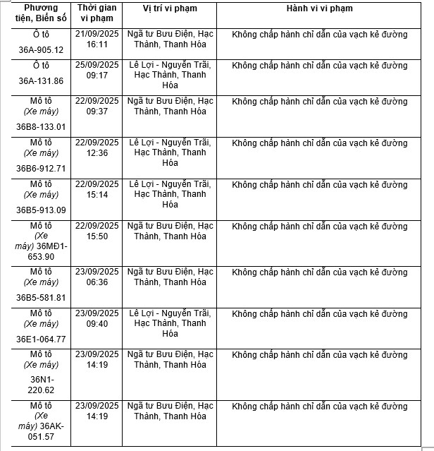 Previously, Thanh Hoa Police said that from September 21, 2025 to September 25, 2025, the police will fine many cases. In this list, car and motorbike owners are fined for not complying with the instructions of the road markings (crossing the lines) as follows: