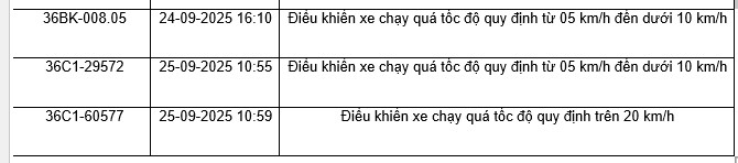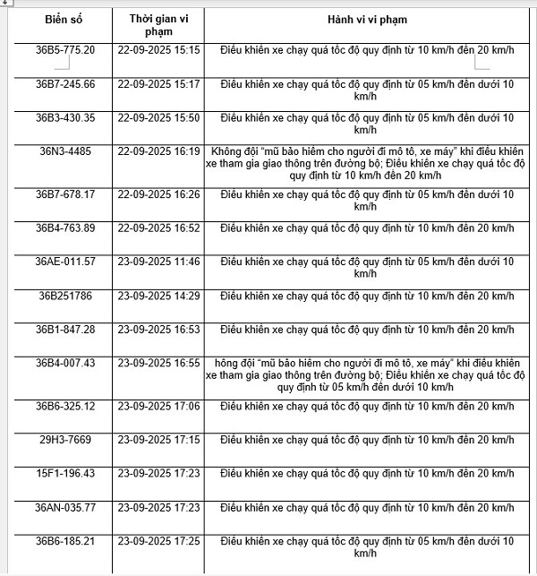 Thanh Hoa Police announced a list of vehicles that violated regulations on speed and were fined on the national highway. Among these, there are motorbikes that were fined on National Highway 1 as follows: