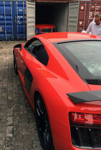 Mới xuất hiện tại cảng là bộ đôi Audi R8 V10 Plus màu đỏ và đánh dấu chiếc Audi R8 V10 Plus thứ tư có mặt tại Việt Nam.