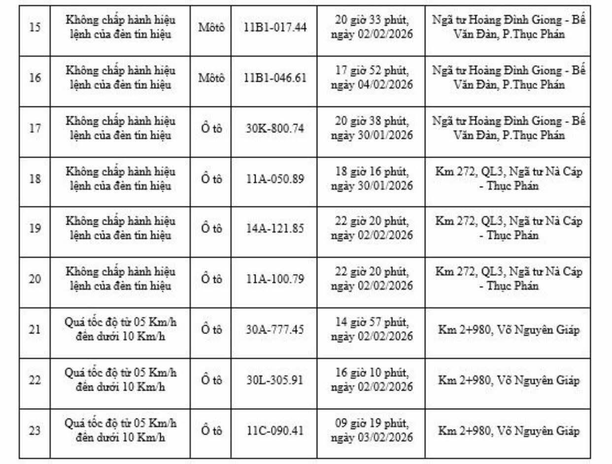 After the notice, Cao Bang Provincial Police requested the violating individuals to come to the headquarters for settlement at: Traffic Police Department of Cao Bang Provincial Police, address in group 5, Thuc Phan ward (former Song Hien), Cao Bang province.