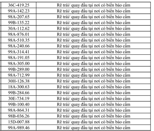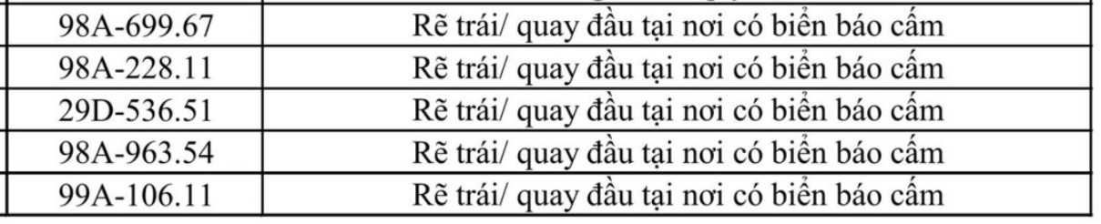 Bac Ninh traffic police also said that from April 11 to April 17, through exploiting the surveillance camera system and using professional equipment, traffic police forces recorded many cases of turning left and U-turning in violation of regulations. The list is as follows: