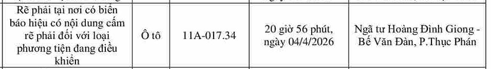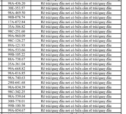 Cao Bang traffic police also said that from April 2 to April 15, through exploiting the surveillance camera system and using professional equipment, traffic police forces recorded many cases of turning right in places with no-entry signs. The list is as follows: