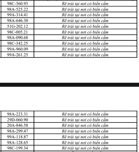 The Traffic Police Department, Hung Yen Provincial Police said that from April 6 to April 12, through exploiting the surveillance camera system and using professional equipment, the traffic police force recorded many violations of U-turn in places with signs prohibiting U-turn as follows: