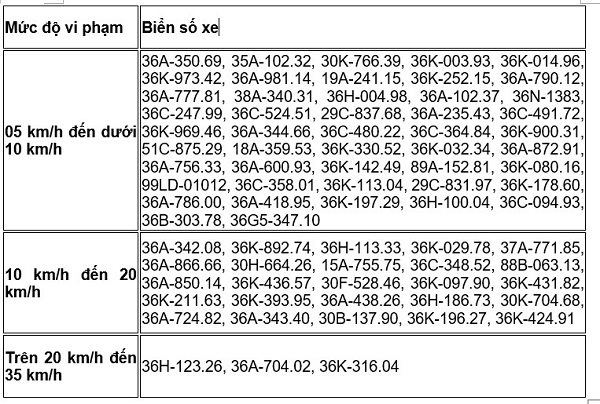 Fines for speeding cars from over 20 km/h to 35 km/h: Fines from 6,000 VND to 8,000 VND; at the same time, violators will be deducted 4 points from their driver's license.