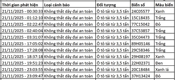 AI cameras issue fines, detecting many cases of not wearing safety belts, including blue-plate and red-plate vehicles as follows: